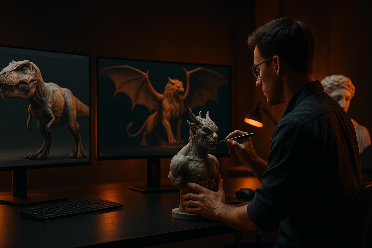 Detailed sculpting or hard-surface modelling to final geometry quality.